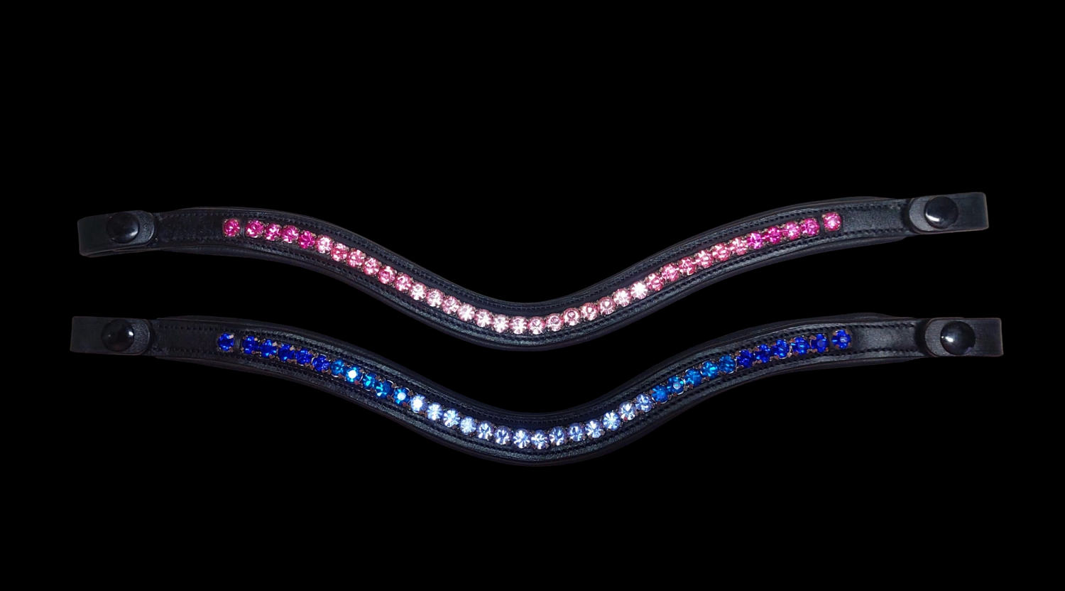 Frontalini per cavalli in cuoio pregiato e cristalli con apertura rapida a...